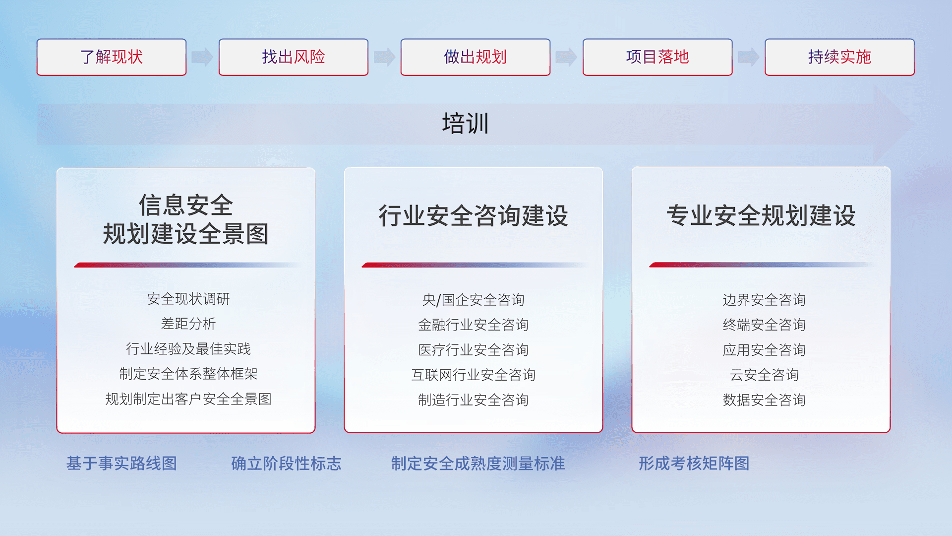 梳理客户信息安全现状调研、、、差距分析结果,,,结合行业先进经验及最佳实践,,,,制订客户的信息安全管控体系总结架构,,,最终形成一个完整的客户信息安全规划与建设的全景图。。