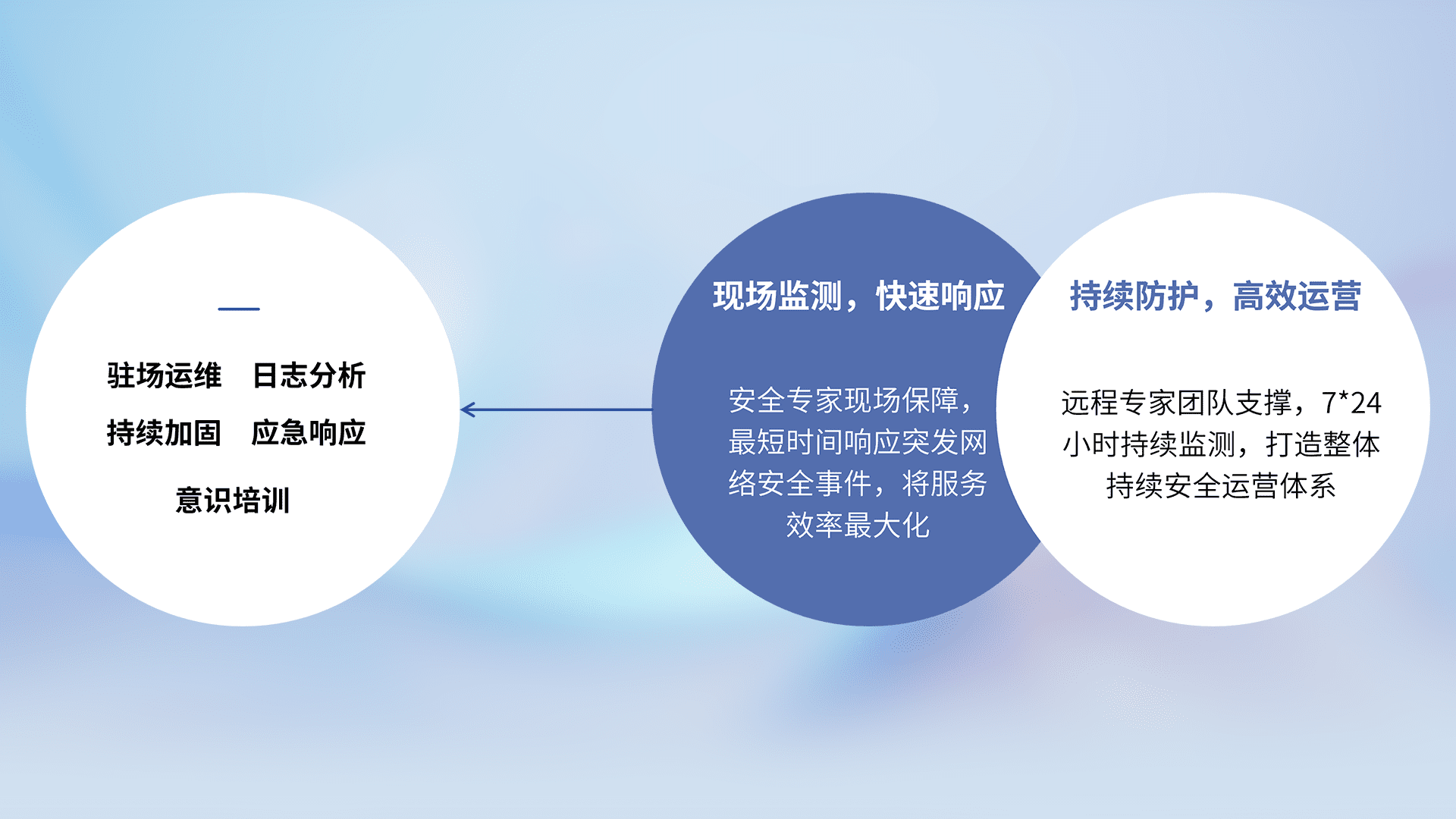针对客户行业特性,,提供专属的一站式安全管理服务,,,,帮助客户全面感知网络空间威胁,,,通过安全专家的线上、、、、线下防护支持,,,,实现风险闭环,,将安全保障常态化,,为客户打造常态化安全运维运营服务。。